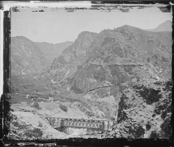 | Keywords: The Devil's Gate Bridge. Echo Canyon. Summit County, Utah - NARA - 516644.jpg Scope and content General notes 516644 Local identifier 57-HS-37 Department of the Interior General Land Office U S Geological and Geographic Survey of the Territories 1874 - 06/30/1879 NARA-Author Jackson William Henry 1843-1942 Photographer 1116078 <br /> Still Picture Records Section Special Media Archives Services Division NWCS-S National Archives at College Park 8601 Adelphi Road College Park MD 20740-6001 1869 Record group Record Group 57 Records of the U S Geological Survey 1839 - 2008 Record group ARC 386 Hayden Survey William H Jackson Photographs compiled 1869 - 1878 Series ARC 516606 File unit File unit ARC Variant control numbers NAIL Control Number NWDNS-57-HS-37 Other versions <gallery> File The_Devil's_Gate_Bridge _Echo_Canyon _Summit_County _Utah_-_NARA_-_516644 tif tif File The_Devil's_Gate_Bridge _Echo_Canyon _Summit_County _Utah_-_NARA_-_516644 jpg jpg </gallery> NARA-cooperation PD-USGov Weber Canyon Railway bridges in Utah Wooden railway bridges Black and white photographs of Utah NARA images of Utah Wooden trestle bridges in the United States 1869 in Utah |