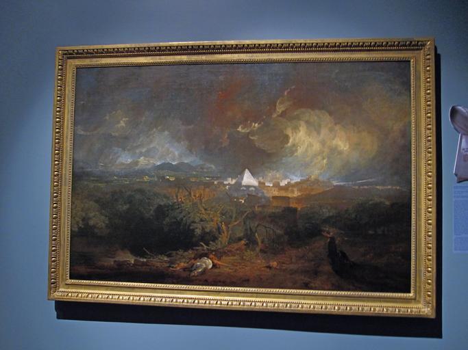 | Keywords: The Fifth Plague of Egypt, New Orleans Museum of Art.jpg This painting was done by British painter Joseph Mallord William Turner in 1800 for the Royal Academy exhibition in London This painting depicts hail which was the seventh plague as described in the Book of Exodus rather than the death of livestock which was the actual fifth plague This painting actually belongs to the Indianapolis Museum of Art home to the largest Turner collection outside the UK The painting came to New Orleans as a result of a Super Bowl wager between the two museums at the beginning of 2010 where the losing city's museum loans an artwork to the winning city's museum for three months 2010's Super Bowl pitted the Indianapolis Colts against the New Orleans Saints and the Saints' victory was a huge morale booster for a town that had been devastated by Hurricane Katrina in 2005 WHO DAT GEAUX SAINTS Speaking of Indianapolis Museum of Art I had planned to visit it during my week-long business trip to Indianapolis in April 2008 but scrapped that when the trip turned extremely sour and I ended up going home a day early Glad to see at least this painting under much more pleasant circumstances Flickr http //flickr com/photos/56619626 N05/8229464002 The Fifth Plague of Egypt New Orleans Museum of Art 2010-05-30 10 49 10 http //www flickr com/people/56619626 N05 InSapphoWeTrust User Flickr upload bot/upload 19 33 9 December 2012 UTC Infrogmation cc-by-sa-2 0 Original painting is PD-old-100 The Fifth Plague of Egypt Turner - Indianapolis Museum of Art - DSC00690 JPG Joseph Mallord William Turner - The Fifth Plague of Egypt - Google Art Project jpg Paintings in the New Orleans Museum of Art Paintings by Joseph Mallord William Turner in the United States 1800 paintings Fifth Plague of Egypt Cattle Plague Template artwork possible |