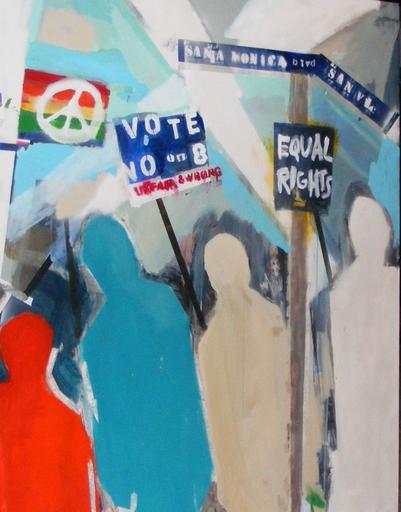Keywords: The Fight.jpg en Painting on display as thousands protest the passing of Proposition 8 in West Hollywood Own GnarlyLikeWhoa 2008-11-05 Street art