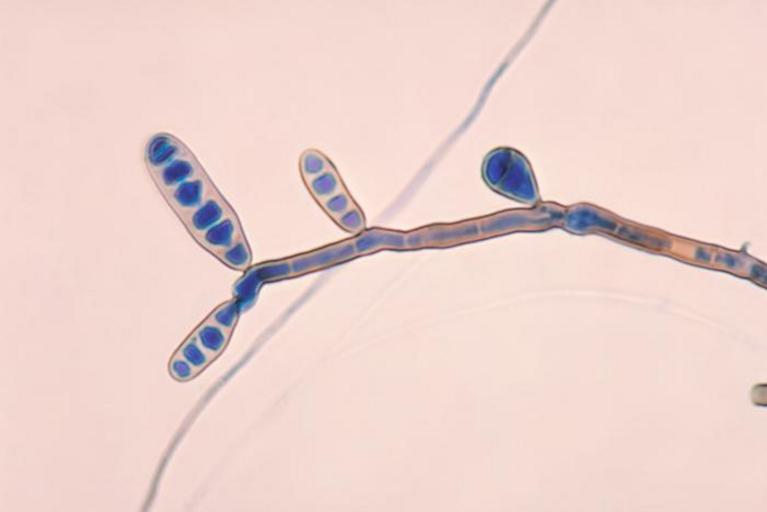 | Keywords: The fine branching tubes of the fungus Exserohilum rostratum PHIL 3784 lores.jpg Note the fine branching tubes of the fungus Exserohilum rostratum which is the cause of Phaeohyphomycosis Phaeohyphomycosis is a fungal infection characterized by superficial and deep tissue involvement caused by dematiaceous dark-walled fungi that form pigmented hyphae or fine branching tubes and yeastlike cells in the infected tissues Content Providers s CDC/Dr Libero Ajello Creation Date 1978 Copyright Restrictions None - This image is in the public domain and thus free of any copyright restrictions As a matter of courtesy we request that the content provider be credited and notified in any public or private usage of this image http //phil cdc gov/phil_images/20030513/13/PHIL_3784_lores jpg PD-USGov Fungal morphology and anatomy Microscopic images of fungi Setosphaeria rostrata |