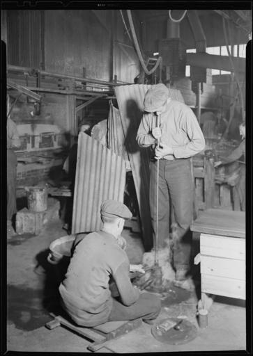 Keywords: nara:arcid=518640 u.s. national archives usnationalarchives lewis hine lewishine 1937 millville new jersey newjersey the great depression thegreatdepression blackandwhite monochrome photo border people black and white Original Caption: Millville, New Jersey - Glass bottles. T.C. Wheaton Co. The flint glass shop showing a blower rotating a bottle as he blows it in an iron mould. A mould boy is sitting on the floor. The blower takes the glass from the oven, puts in a mould and as he blows he slowly works it around in his hand. When the shutting mould boy opens the mould a second boy carries it away to be annealed, March 1937 U.S. National Archives’ Local Identifier: 69-RP-413 Photographer: Hine, Lewis Subjects: The New Deal Tennessee Valley Authority Works Progress Administration Work Portraits The Great Depression Persistent URL: research.archives.gov/description/518640 Repository: Still Picture Records Section, Special Media Archives Services Division (NWCS-S), National Archives at College Park, 8601 Adelphi Road, College Park, MD, 20740-6001. For information about ordering reproductions of photographs held by the Still Picture Unit, visit: www.archives.gov/research/order/still-pictures.html Reproductions may be ordered via an independent vendor. NARA maintains a list of vendors at www.archives.gov/research/order/vendors-photos-maps-dc.html Access Restrictions: Unrestricted Use Restrictions: Unrestricted Original Caption: Millville, New Jersey - Glass bottles. T.C. Wheaton Co. The flint glass shop showing a blower rotating a bottle as he blows it in an iron mould. A mould boy is sitting on the floor. The blower takes the glass from the oven, puts in a mould and as he blows he slowly works it around in his hand. When the shutting mould boy opens the mould a second boy carries it away to be annealed, March 1937 U.S. National Archives’ Local Identifier: 69-RP-413 Photographer: Hine, Lewis Subjects: The New Deal Tennessee Valley Authority Works Progress Administration Work Portraits The Great Depression Persistent URL: research.archives.gov/description/518640 Repository: Still Picture Records Section, Special Media Archives Services Division (NWCS-S), National Archives at College Park, 8601 Adelphi Road, College Park, MD, 20740-6001. For information about ordering reproductions of photographs held by the Still Picture Unit, visit: www.archives.gov/research/order/still-pictures.html Reproductions may be ordered via an independent vendor. NARA maintains a list of vendors at www.archives.gov/research/order/vendors-photos-maps-dc.html Access Restrictions: Unrestricted Use Restrictions: Unrestricted |
