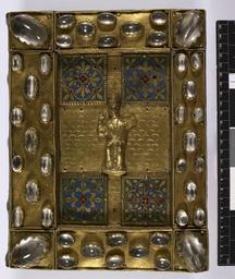 | Keywords: THE Four Gospels, in Latin ; with prefaces. Imperfect. Vellum. Written in Germany in the Xth or XIth cent. - Upper cover (Add Ms 21921).jpg Style Treasure binding Religious miscellaneous; Caption Upper cover; Colour Gold multi-coloured; Edge Unspecified exhibition history Decorative Technique Jewelled Onlaid Enamelled; Cover Material Metal The cover is ornamented with plates of copper gilt with an image of Christ in the centre and enameled corner pieces; the borders studded with large crystals Quarto May have been made in Germany 12c object history Text 11c ; Germany; Unspecified object type Cc-zero place of creation Binding Germany place of discovery Unspecified British Library image http //www bl uk/catalogues/bookbindings/LargeImage aspx RecordId 020-000016617 ImageId ImageId 55858 Copyright BL THE Four Gospels in Latin ; with prefaces Imperfect Vellum Written in Germany in the Xth or XIth cent Uploaded with GWToolset THE Four Gospels in Latin ; with prefaces Imperfect Vellum Written in Germany in the Xth or XIth cent - Upper cover Add Ms 21921 http //www webarchive org uk/bldatasets/bindings/Add21921 jpg 12th-century bookbinding British Library Additional Manuscripts British Library Bookbindings Taken with Phase One P45+ |