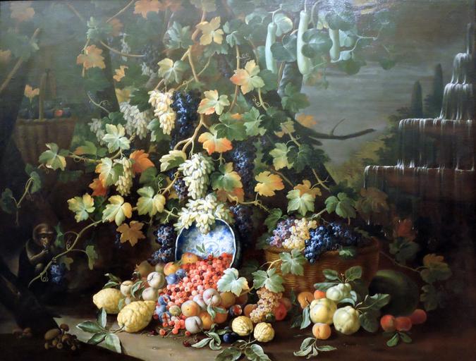 Keywords: the framework still life fruit grapes leaves monkey fontana ruoppolo