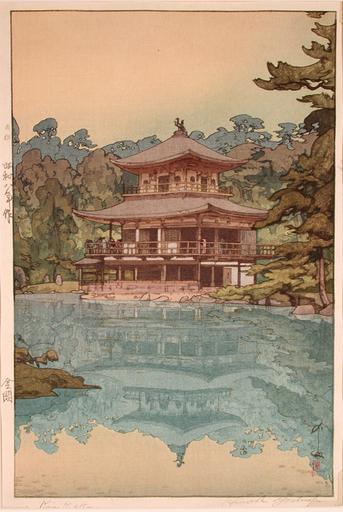 Keywords: The Golden Pavilion (5759027207).jpg en <b>Accession Number </b> 1998 101 <b>Display Artist </b> Yoshida Hiroshi <b>Display Title </b> The Golden Pavilion <b>Series Title </b> Kansai District <b>Creation Date </b> 1933 <b>Height </b> 14 13/16 in <b>Width </b> 9 5/8 in <b>Display Dimensions </b> 14 13/16 in x 9 5/8 in 37 62 cm x 24 45 cm <b>Credit Line </b> Gift of Mr and Mrs Robert E Paige <b>Label Copy </b> In the early Tokaido series created before Hiroshiges popular works of the 1830s to 1850s stations of the Tokaido were depicted not as landscape scenes but with an emphasis on figures stories or products associated with each region In this print Hokusai depicts an interior scene probably of an inn with two women seated by an alcove and a large shoji lantern One of the women appears to be trying to light the floor lantern while the other adjusts the bow of a large obi In the vertical cartouche in the upper right corner the artist signed the print gakyojin Hokusai ga which means by Hokusai who was crazy about art <b>Label Copy Spanish </b> En las series tempranas del Tokaid que se crearon antes de las populares obras de Hiroshige de los 1830 a los 1850 las estaciones del Tokaido se no se representaban como escenas de paisajes sino que enfatizaban las figuras historias o productos asociados con cada regin En esta impresin Hokusai muestra una escena interior probablemente de una posada con dos mujeres sentadas junto a una alcoba y una gran lmpara shoji Parece ser que una de las mujeres intenta prender la lmpara mientras que la otra ajusta el moo de un gran obi En la cartela en la esquina derecha superior el artista firm el grabado gakyojin Hokusai ga que significa por Hokusai quien estaba loco por el arte <b>Collection </b> <a href http //www sdmart org/art/our-collection/asian-art rel nofollow >The San Diego Museum of Art</a> 2011-05-25 12 49 57 https //www flickr com/photos/thesandiegomuseumofartcollection/5759027207/ Flickr en thesandiegomuseumofartcollection PD-old-100 Files from the San Diego Museum of Art to be checked |