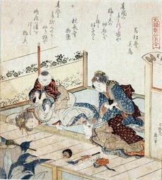Keywords: The groove shell (5758875979).jpg en <b>Accession Number </b> 1950 32 31 <b>Display Artist </b> Katsushika Hokusai <b>Display Title </b> The groove shell <b>Translation s </b> Mizogai <b>Series Title </b> A Matching Game with the Genroku Poem Shells <b>Suite Name </b> Genroku kasen kai awase <b>Creation Date </b> 1821 <b>Medium </b> Woodblock <b>Height </b> 7 13/16 in <b>Width </b> 7 in <b>Display Dimensions </b> 7 13/16 in x 7 in 19 84 cm x 17 78 cm <b>Credit Line </b> Gift of Alice Klauber <b>Label Copy </b> Children play with special round berries like marbles in this page from a surimono series commissioned for the beginning of the Year of the Snake by the Yomo Group of poets The Yomo Group was the largest organization of poets in Edo and one of the most avid sponsors of surimono sets in the early nineteenth century They selected the theme of shells for the Year of the Snake because a white snake is the companion of the goddess Benten who is worshipped at a shrine on the island of Enoshima famous for its lovely seashells A different kind of shell is cleverly referenced in each page of the set In this image the artist features the grooved shell called mizogai by depicting children playing a game in which the little balls are rolled in the grooves of a wooden threshold <b>Label Copy Spanish </b> Los nios juegan con bayas redondas especiales como canicas en esta pgina de una serie de surimono encargada para el comienzo del Ao de la Serpiente por el grupo de poetas Yomo El grupo Yomo fue la organizacin de poetas ms grande en Edo y uno de los patrocinadores ms vidos de las series de surinomo a principios del siglo XIX Seleccionaron el tema de los caracoles para el Ao de la Serpiente porque una serpiente blanca es la compaera de la diosa Benten quien es venerada en un santuario en la isla de Enoshima famosa por sus conchas hermosas Hbilmente se hace referencia a un tipo de concha en cada pgina de la serie En esta imagen el artista presenta la concha estriada llamada mizogai representando a los nios que juegan con pequeas pelotas que se ruedan en las ranuras del umbral de madera <b>Collection </b> <a href http //www sdmart org/art/our-collection/asian-art rel nofollow >The San Diego Museum of Art</a> 2007-05-10 09 16 33 https //www flickr com/photos/thesandiegomuseumofartcollection/5758875979/ Flickr en thesandiegomuseumofartcollection PD-old-100 Files from the San Diego Museum of Art to be checked Marbles in art