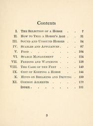 | Keywords: The horse and how to care for him (Page 3) BHL22499308.jpg The horse and how to care for him how to choose a horse tell his age feed stable harness and train him and keep him in good health / by C T Davies 22499308 72994 29597 Page 3 Table of Contents http //www biodiversitylibrary org/page/22499308 10 5962/bhl title 29597 Davies C T NOT_IN_COPYRIGHT<br> Biodiversity Heritage Library PD-old-70-1923 The horse and how to care for him Images uploaded by Fæ Files from the Biodiversity Heritage Library |