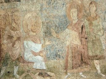 Keywords: The Inquisition of St. George by the Emperor Diocletian - Google Art Project.jpg commons date commons medium commons dimensions commons institution commons location commons references commons object_history commons exhibition_history commons credit_line commons inscriptions commons notes commons accession_number commons source commons permission commons other_versions commons zoom core title This is a scene from the life cycle of the saint George is a successful court commander He was disappointed after the persecution of Christians and distributed his property among the poor He proclaimed himself a Christian in the presence of the Emperor Diocletian The scene is full of inner tension George appears before the Emperor Diocletian full of confidence in his rightness The emperor is sitting on the throne Behind him there is a figure of a guard Diocletian tries to stop George with a gesture of his right hand George raises his hand with a gesture known from ancient times as a gesture of appeal His figure demonstrates confidence core creator Unknown core date dateCreated 1000 core type monumental painting fresco google display_date 1000 google is_artproject TRUE google is_gigapixel FALSE google is_secured TRUE google partner/id 000000000804b21e google picasa_token NcY98yAKeJDDo4AnCS4EQmi5pNI special url_id mAHk3huaEIQFQA google partner/name St Sophia of Kyiv special partner/name_no_lang St Sophia of Kyiv PD-old-100-1923 Google Art Project works by unknown artist Saint Sophia Cathedral frescos Saint George's martyrdom |