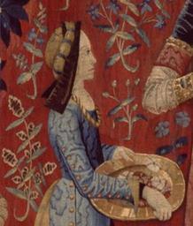 | Keywords: The Lady and the unicorn Smell. det1jpg.jpg en The Lady and the Unicorn French La Dame à la licorne also called the Tapestry Cycle is the title of a series of six Flemish tapestries depicting the senses They are estimated to have been woven in the late 15th century in the style of mille-fleurs fr La Dame à la licorne est une série de six tapisseries datant du XVe siècle que l'on peut voir au musée national du Moyen Âge et illustrent des sens http //www musee-moyenage fr/ang/pages/page_id18026_u1l2 htm between 1484 and 1500; entre 1484 et 1500 La Dame à la licorne PD-old |