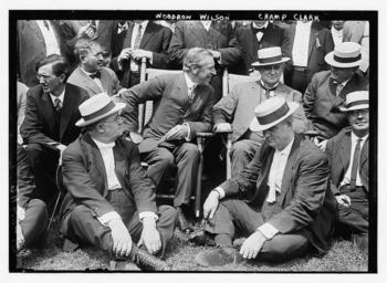 Keywords: The Library of Congress - Woodrow Wilson; Champ Clark (LOC) (pd).jpg Bain News Service publisher Woodrow Wilson; Champ Clark no date recorded on caption card 1 negative glass ; 5 x 7 in or smaller Notes Title from unverified data provided by the Bain News Service on the negatives or caption cards Forms part of George Grantham Bain Collection Library of Congress Format Glass negatives Rights Info No known restrictions on publication Repository Library of Congress Prints and Photographs Division Washington D C 20540 USA http //hdl loc gov/loc pnp/pp print hdl loc gov/loc pnp/pp print General information about the Bain Collection is available at http //hdl loc gov/loc pnp/pp ggbain hdl loc gov/loc pnp/pp ggbain Persistent URL http //hdl loc gov/loc pnp/ggbain 10958 hdl loc gov/loc pnp/ggbain 10958 Call Number LC-B2- 2457-10 http //www flickr com/photos/8623220 N02/2422676781/ Woodrow Wilson; Champ Clark LOC 1910-01-01 00 00 http //www flickr com/people/8623220 N02 The Library of Congress PD-Bain LOC-image ggbain 10958 File Upload Bot Magnus Manske May 31 2008 Woodrow Wilson Transfered by User ComputerHotline <br/> People wearing straw hats |