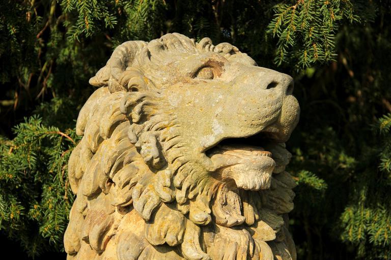 Keywords: the lion statue detail head stone