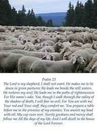 | Keywords: god jesus jesus christ jesuschrist god the father godthefather holy spirit holyspirit holy church scripture angels faith prayer pray hope peace love alive forevermore aliveforevermore angel christian righteous king of kings kingofkings heaven archangel god is love godislove prince of peace princeofpeace creator christ the creator christthecreator god the creator godthecreator third heaven thirdheaven awesome alpha and omega alphaandomega wonderful glorious omnipotent almighty bible holy bible holybible armor of god armorofgod glorify hallelujah judgment judgment day judgmentday usa united states of america unitedstatesofamerica sleep christ who strengthens me christwhostrengthensme word of god wordofgod word of god stands forever wordofgodstandsforever shine like stars shinelikestars the lord is my shepherd thelordismyshepherd eternity confess christ confesschrist confess repent repentance humble sinner humble yourself humbleyourself saved lost found salvation praise god praisegod amen word became flesh wordbecameflesh be strong bestrong courage spiritual warfare spiritualwarfare spiritual warfare outdoor New King James Version (NKJV) The Lord the Shepherd of His People A Psalm of David. The Lord is my shepherd; I shall not want. He makes me to lie down in green pastures; He leads me beside the still waters. He restores my soul; He leads me in the paths of righteousness For His name’s sake. Yea, though I walk through the valley of the shadow of death, I will fear no evil; For You are with me; Your rod and Your staff, they comfort me. You prepare a table before me in the presence of my enemies; You anoint my head with oil; My cup runs over. Surely goodness and mercy shall follow me All the days of my life; And I will dwell in the house of the Lord Forever. Romans 8:28 New King James Version (NKJV) And we know that all things work together for good to those who love God, to those who are the called according to His purpose. New King James Version (NKJV) The Lord the Shepherd of His People A Psalm of David. The Lord is my shepherd; I shall not want. He makes me to lie down in green pastures; He leads me beside the still waters. He restores my soul; He leads me in the paths of righteousness For His name’s sake. Yea, though I walk through the valley of the shadow of death, I will fear no evil; For You are with me; Your rod and Your staff, they comfort me. You prepare a table before me in the presence of my enemies; You anoint my head with oil; My cup runs over. Surely goodness and mercy shall follow me All the days of my life; And I will dwell in the house of the Lord Forever. Romans 8:28 New King James Version (NKJV) And we know that all things work together for good to those who love God, to those who are the called according to His purpose. |
