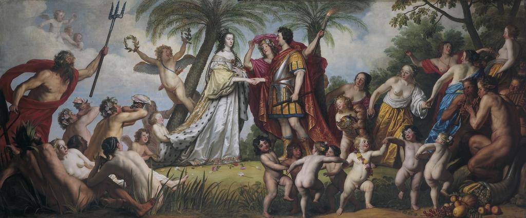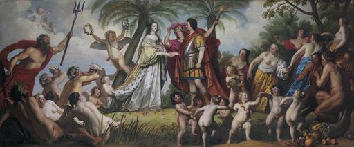 Keywords: The Marriage of Frederik Hendrik and Amalia van Solms, by Gerard van Honthorst.jpg en The Marriage of Frederik Hendrik and Amalia van Solms oil on canvas 318 x 755 cm signed b l GHonthorst 1651 1651 https //rkd nl/explore/images/246816 Paleis Huis ten Bosch Oranjezaal Creator Gerard van Honthorst other versions Custom license marker 2016 11 28 PD-old-100 Allegorical paintings by Gerard van Honthorst 1651 Oranjezaal 1651 ImageNote 1 3260 284 339 426 6315 2622 2 Frederik Hendrik ImageNoteEnd 1 ImageNote 2 2550 292 355 419 6315 2622 2 Amalia van Solms ImageNoteEnd 2 ImageNote 3 3071 419 245 340 6315 2622 2 Hymen ImageNoteEnd 3 ImageNote 4 1800 482 434 466 6315 2622 2 Cupido ImageNoteEnd 4 ImageNote 5 497 450 616 648 6315 2622 2 Neptunus ImageNoteEnd 5