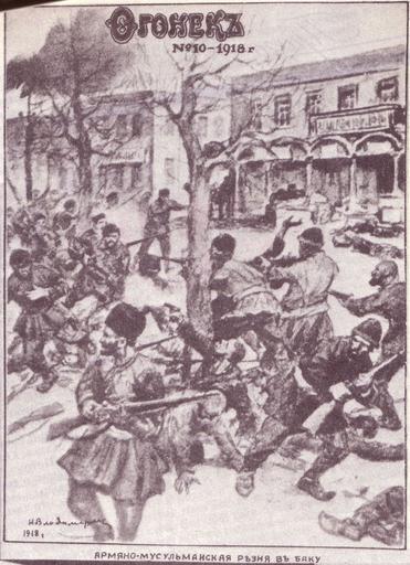 MAKE A MEME View Large Image The massacre in Baku, 1918.jpg «А мяно-мусульманская  езня в Баку» Обложка  усского еженедельного жу нала «Огонёк»  10 ма т 1918 года ru wikipedia Его ...