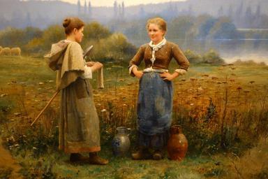 Keywords: The Meeting by Daniel Ridgway Knight, detail, c. 1888, oil on canvas - New Britain Museum of American Art - DSC09371.JPG en Exhibit in the New Britain Museum of American Art New Britain Connecticut USA This artwork is in the public domain because the artist died more than 70 years ago The museum permitted photographs of this exhibit without restriction 2013-06-27 12 34 39 own Daderot PD-old-70-1923 cc-zero Uploaded with UploadWizard The Meeting by Daniel Ridgway Knight |