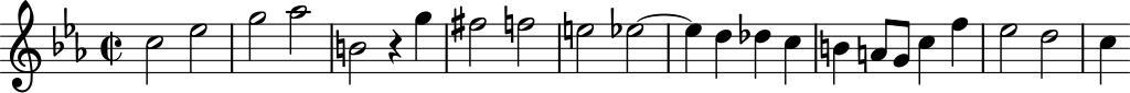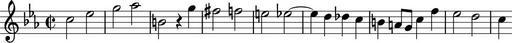 Keywords: The Musical Offering theme.svg Theme from Johann Sebastian Bach's The Musical Offering Rendered by bdesham in GNU LilyPond 2007-10-07 PD-old LilyPond source <pre> \version 2 10 25 \header tagline \score \new Staff \relative c \clef treble \key c \minor \time 2/2 c2 ees g2 aes b 2 r4 g'4 fis2 f e2 ees ~ ees4 d des c b4 a8 g c4 f ees2 d c4 \layout ragged-right t \context \Score \override SpacingSpanner 'spacing-increment 0 8 </pre> Sheet music of Johann Sebastian Bach The Musical Offering Images with LilyPond source code |