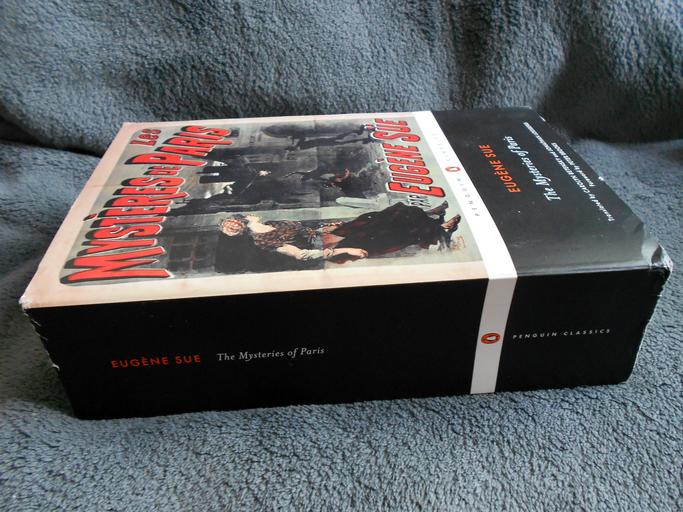 Keywords: books literature A new 2016 addition to Penguin Classics. Only 1359 large-size pages. About 20 years or so ago I had the first English translation of Sue's novel. It came in 4 cloth octavo volumes of a very light green color. I also had the 3 volumes of Sue's other giant novel The Wandering Jew, from the same publisher. The translation of The Mysteries was pretty bad, and so I ended up donating those old volumes to the library. This looks to be a much better translation. It'll be great if they do an edition of The Wandering Jew in Penguin. 19th century French literature isn't just Balzac, Flaubert, Hugo, and Zola. A new 2016 addition to Penguin Classics. Only 1359 large-size pages. About 20 years or so ago I had the first English translation of Sue's novel. It came in 4 cloth octavo volumes of a very light green color. I also had the 3 volumes of Sue's other giant novel The Wandering Jew, from the same publisher. The translation of The Mysteries was pretty bad, and so I ended up donating those old volumes to the library. This looks to be a much better translation. It'll be great if they do an edition of The Wandering Jew in Penguin. 19th century French literature isn't just Balzac, Flaubert, Hugo, and Zola. |