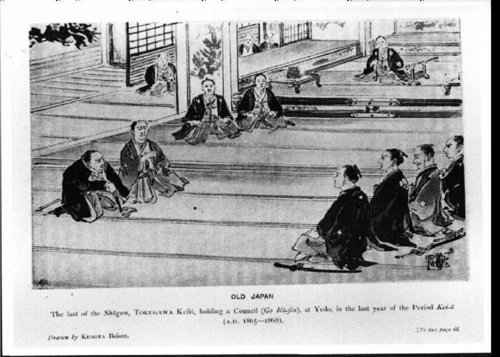 Keywords: The New Far East (1899) 04.jpeg ja 昔の日 :御 中会議を行う 後の将軍徳 慶 慶 後の年(1868年) 江戸にて en Old Japan The last of the Shogun Tokugawa Keiki holding a Council Go Ro-Jiu at Yedo in the last year of the period Kei-o A D 1865-1868 1899 http //db nichibun ac jp/ja/d/GAI/info/GD025/ <br/>The New Far East 1899 edited by Arthur Diosy Creator Kubota Beisen other versions Custom license marker 2016 01 26 PD-Japan PD-old-auto-1923 1906 The New Far East 1899 Kubota Beisen Tokugawa Yoshinobu The end of Edo shogunate |