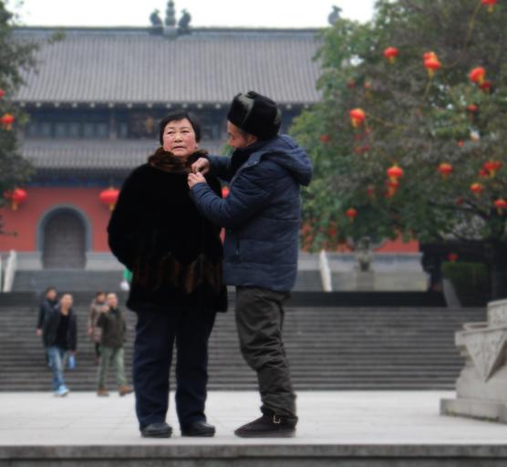 Keywords: the old man tender feeling company love the aged concern a pair of take care wife husband