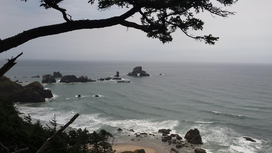 Keywords: oregon coast sea outdoor breathtaking clear park green seaside rocks travel colourful amazing view pacific ocean stacks trees sand horizon summer waves clouds oregon coast recreation wood forest beach colorful mountai