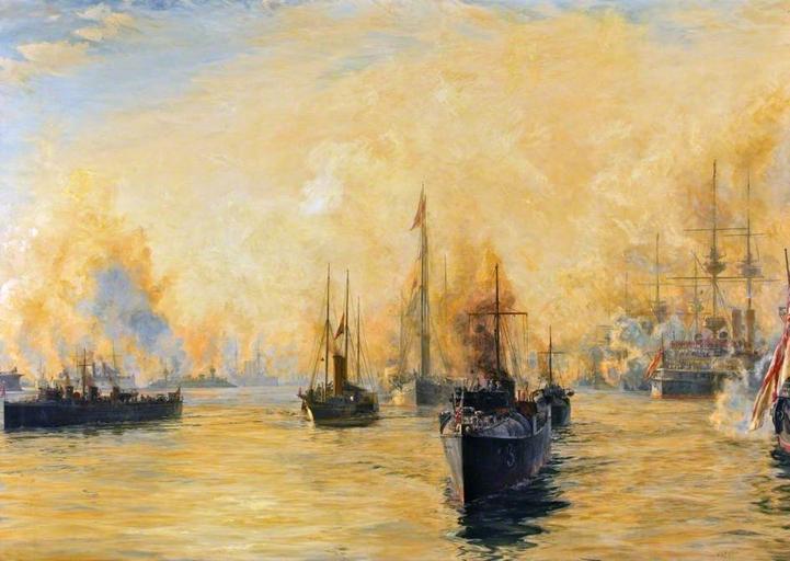 | Keywords: The Passing of a Great Queen.jpg artwork Creator William Lionel Wyllie en Wyllie depicts a scene during the funeral of Queen Victoria The royal yacht HMY Alberta carrying the Queen's body arrives in Gosport in the late afternoon of 1 February 1901 with the setting sun behind her The royal standard flies at half-mast and surrounding the small vessel are several escorting destroyers In the background the anchored battleships fire salutes Following behind the Alberta is the larger royal yacht HMY Victoria and Albert flying the royal standard and carrying King Edward VII and other royal mourners 1901 oil on canvas cm 152 7 214 3 Institution Walker Art Gallery http //www bbc co uk/arts/yourpaintings/paintings/the-passing-of-a-great-queen-97021 BBC Your Paintings Collections other versions PD-old-75 Uploaded with UploadWizard HMY Victoria and Albert II ship 1855 HMY Alberta ship 1863 Victoria of the United Kingdom William Lionel Wyllie 1901 paintings ImageNote 1 485 469 34 9 944 670 2 HMY Victoria and Albert ImageNoteEnd 1 ImageNote 2 371 492 18 9 944 670 2 HMY Alberta ImageNoteEnd 2 |