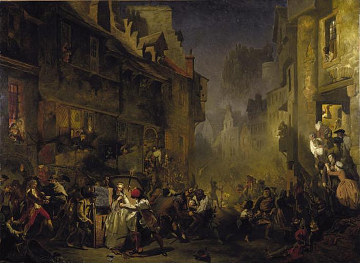 Keywords: The Porteous Mob James Drummond.jpg The Porteous Mob National Gallery of Scotland Accession no NG 180 Oil on canvas cm 111 80 152 50 object history provenanceEvent purchase RAPFAS 1856 provenanceEvent transfer 1897 National Gallery of Scotland http //www nationalgalleries org/index php/collection/online_az/4 322/results/0/4837/ 1855 James Drummond 1816-1877 PD-old-100 James Drummond crowds in art |