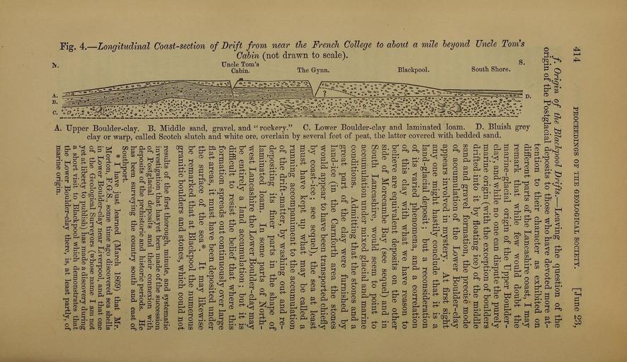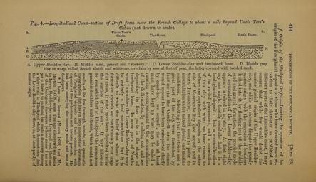 | Keywords: The Quarterly journal of the Geological Society of London (12961247995).jpg 414 <br> PEOCEEDINGS OF THE GEOLOGICAL SOCIETT JunC 23 <br> 3 <br> <br> Ss <br> g <br> O <br> r <br> <br> <br> S <br> § <br> OQ <br> <br> 5 <br> o <br> 55 <br> » <br> rO <br> J» <br> pq <br> i <br> ' ' I <br> y v <br> / Origin of the JBlachjoool Drifts ” Leaving the question of the <br> origin of the Postglacial deposits to those who have devoted more at- <br> tention to their character as exhibited on <br> different parts of the Lancashire coast I may <br> i remark that while few would doubt the <br> marine-glacial origin of the Upper Boulder- <br> r5 ' clay and while no one can dispute the purely <br> w marine origin with the exception of boulders <br> S drifted into it by floating ice of the middle <br> sand and gravel formation the precise mode <br> 1- of accumulation of the Lower Boulder-clay <br> '4 v j – -g appears involved in mystery At first sight <br> i v 'ntfj\ S ts y one might hastily conclude that it is a <br> land-glacial deposit ; but a reconsideration <br> of its varied phenomena and a correlation <br> of this clay with what we have reason to <br> I believe are equivalent deposits on the other <br> © side of Morecambe Bay see sequel and in <br> 'o' South Lancashire would seem to point to <br> accumulation under mixed glacial and marine <br> 'tf conditions Admitting that the stones and a <br> pq ° great part of the clay were furnished by <br> land-ice in the Carnforth area the stones <br> would appear to have been transported chiefly <br> by coast-ice ; see sequel the sea at least <br> must have kept u what may be called a <br> running accompaniment to the accumulation <br> of the drift-matter by washing out and re- <br> depositing its finer parts in the shape of <br> laminated loam In some parts of IN'orth- <br> west Lancashire the Lower Boulder-clay may <br> be entirely a land accumulation; but it is <br> difficult to resist the belief that where this <br> 1 r formation spreads out continuously over large <br> U flat areas it must have been deposited under <br> -o the surface of the sea It may likewise <br> be remarked that at Blackpool the numerous <br> granitic boulders and stones which could not <br> results of the first thorough minute and systematic <br> - ¢ – ' T investigation that has yet been made of tlae succession <br> Ait y/ ' j M' of Postglacial deposits and their connexion with <br> J\T\ Mly;\ i Is deposits of the prehistoric and historic periods He <br> cMm ' A ' ' ž has been surveying the country south and east of <br> ' £ Southport <br> I have just learned March 1869 that Mr <br> g Morton F G- S some time ago discovered sea shells <br> o in Lower Boulder-clay near Liverpool and that one <br> ' of the Geological Surveyors whose name I am not <br> S yet at liberty to publish has made a discovery during <br> p4 a short visit to Blackpool which demonstrates that <br> i- the Lower Boulder-clay there is at least partly of <br> marine origin <br> J -S <br> o PI <br> o <br> - <br> ;5 <br> f <br> ¢ M 36103289 111288 51125 Page 414 Text v 25 http //www biodiversitylibrary org/page/36103289 1869 Geological Society of London Biodiversity Heritage Library The Quarterly journal of the Geological Society of London v 25 1869 Geology Periodicals Smithsonian Libraries bhl page 36103289 dc identifier http //biodiversitylibrary org/page/36103289 smithsonian libraries Information field Flickr posted date ISOdate 2014-03-06 Check categories 2015 August 26 CC-BY-2 0 BioDivLibrary https //flickr com/photos/61021753 N02/12961247995 2015-08-26 14 59 32 cc-by-2 0 PD-old-70-1923 The Quarterly journal of the Geological Society of London 1869 Photos uploaded from Flickr by Fæ using a script |