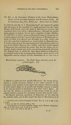 Keywords: The Quarterly journal of the Geological Society of London (13889873748).jpg LYDEKKEK ON THE GENUS MICROCHOCRUS 529 <br> 39 Note on the Zoological Position of the Genus MiCROCHCEEUSy <br> Wood and its Appaeent Identity luith Hyopsodtjs Leidy By <br> K Lydekker Esq B A F G S c Eead June 24 1885 <br> In 1846 the late Mr S V Wood described and figured the palate <br> and left ramus of the mandible of a small mammal from the Upper <br> Eocene of Hordwell under the name of MicrocJioerus erinaceus and <br> considered that it was allied to Hyracotherium ; although the specific <br> name appears to indicate that he had a suspicion of other affinities <br> In 1870 Prof J Leidy t proposed the generic name of Hyopsodus for <br> a small mammal from the reputed Upper Eocene of Wyoming the re- <br> mains of which were figured and described in a later workt and <br> were also regarded as indicating an animal allied to Hyracotherium <br> A recent comparison of the type specimens of Microchosrus which are <br> now in the British Museum No 25229 with Prof Leidy \s figures <br> of Hyopsodus has convinced the writer that the two forms are ex- <br> tremely closely related and in his own opinion generically identical <br> The English form of which the right upper dentition is figured on <br> an enlarged scale in the accompanying woodcut agrees in size with <br> Hyopsodus vicarius Cope§ and the resemblance is so close that it <br> Microchoerus erinaceus The Right Upper Dentition from the <br> palatal aspect x 2 <br> is difficult to point out even specific differences ; the former shows <br> indeed a minute accessory column in the valley external to the <br> true main outer columns in the upper true molars which is wanting <br> in Prof Leidy's figure of H paidus but whether present or absent <br> in H vicarius cannot be determined from Prof Cope's figure In <br> any case the absence or presence of this column would not in the <br> present writer's opinion be a character of more than specific value <br> The figured American specimens of Hyopsodus do not show all <br> the anterior teeth and in this respect the type of Microchoerus is of <br> Charlesworth's London Geological Journal ' No i p 5 pi ii figs 1 and <br> 3 1846 <br> t Proc Ac Nat Sci Philad 1870 p 110 <br> I ' Contributions to Extinct Vertebrate Fauna of the Western Territories ' <br> Rep U S Geol Surv pp 75-80 pi vi 1873 <br> § Vic'e Amer Nat 188o p 460 fig 3 <br> 2p 2 37047409 114009 51125 Page 529 Text 41 http //www biodiversitylibrary org/page/37047409 1885 Geological Society of London NameFound H paidus NameFound Hyopsodus NameConfirmed Hyopsodus EOLID 4524732 NameBankID 4199624 NameFound Hyopsodus vicarius NameFound Hyracotherium NameConfirmed Hyracotherium EOLID 4452113 NameBankID 4203387 NameFound Microchoerus NameConfirmed Microchoerus EOLID 3064462 NameBankID 4242100 NameFound Microchoerus erinaceus NameConfirmed Microchoerus erinaceus Wood 1846 EOLID 4523233 NameFound Microchosrus Biodiversity Heritage Library The Quarterly journal of the Geological Society of London v 41 1885 Geology Periodicals Smithsonian Libraries bhl page 37047409 dc identifier http //biodiversitylibrary org/page/37047409 smithsonian libraries Information field Flickr posted date ISOdate 2014-04-30 Check categories 2015 August 26 CC-BY-2 0 BioDivLibrary https //flickr com/photos/61021753 N02/13889873748 2015-08-26 04 58 07 cc-by-2 0 PD-old-70-1923 The Quarterly journal of the Geological Society of London 1885 Photos uploaded from Flickr by Fæ using a script