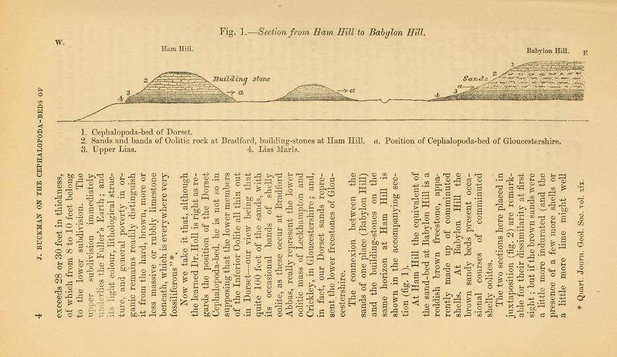 | Keywords: The Quarterly journal of the Geological Society of London (12735563475).jpg J BTJCKMAN ON THE CEPHALOPODA-BEDS OF <br> exceeds 28 or 30 feet in thickness <br> of which from 8 to 10 feet belong <br> to the lower subdivision The <br> upper subdivision immediately <br> underlies the Fuller's Earth ; and <br> its light colour lithological struc- <br> ture and general poverty in or- <br> ganic remains readily distinguish <br> it from the hard brown more or <br> less massive or rubbly limestone <br> beneath which is everywhere very <br> f ossiliferous <br> Now we take it that although <br> the learned Dr Holl is right as re- <br> gards the position of the Dorset <br> Cephalopoda-bed he is not so in <br> supposing that the lower members <br> of the Inferior Oolite all thin out <br> in Dorset ” our view being that <br> quite 100 feet of the sands with <br> its occasional bands of shelly <br> oolite as these occur at Bradford <br> Abbas really represent the lower <br> oolitic mass of Leckhampton and <br> Crickley in Gloucestershire ; and <br> in fact our Dorset sands repre- <br> sent the lower freestones of Glou- <br> cestershire <br> The connexion between the <br> sands of one place Babylon Hill <br> and the building-stones on the <br> same horizon at Ham Hill is <br> shown in the accompanying sec- <br> tion fig 1 <br> At Ham Hill the equivalent of <br> the sand-bed at Babylon Hill is a <br> reddish brown freestone appa- <br> rently made up of comminuted <br> shells At Babylon Hill the <br> brown sandy beds present occa- <br> sional courses of comminuted <br> shelly oolites <br> The two sections here placed in <br> juxtaposition fig 2 are remark- <br> able for their dissimilarity at first <br> sight ; but if the brown sands were <br> a little more indurated and the <br> presence of a few more shells or <br> a little more lime might well <br> Quart Journ Gcol Soc vol xix <br> OS tO –º-' <br> a co p <br> o <br> p <br> a 1 <br> <br> 5 o- <br> £L o <br> 5 t <br> bd <br> –º – <br> P <br> £ 2 <br> CO I ” I <br> So <br> T 1 <br> p <br> B <br> O <br> o <br> CD <br> cT <br> c <br> o <br> S3 <br> 4 S <br> w <br> r <br> mm g <br> hiH - <br> Pil i <br> a <br> Q <br> tts <br> t c <br> o 35818111 110705 51125 Page 4 Text 33 http //www biodiversitylibrary org/page/35818111 1877 Geological Society of London Biodiversity Heritage Library The Quarterly journal of the Geological Society of London v 33 1877 Geology Periodicals Smithsonian Libraries bhl page 35818111 dc identifier http //biodiversitylibrary org/page/35818111 smithsonian libraries Information field Flickr posted date ISOdate 2014-02-24 Check categories 2015 August 26 CC-BY-2 0 BioDivLibrary https //flickr com/photos/61021753 N02/12735563475 2015-08-26 19 58 19 cc-by-2 0 PD-old-70-1923 The Quarterly journal of the Geological Society of London 1877 Photos uploaded from Flickr by Fæ using a script |