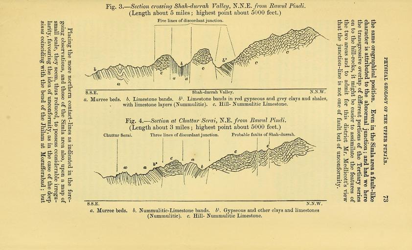 Keywords: The Quarterly journal of the Geological Society of London (12733760933).jpg 74 A B WYNNE ON SOME FEATURES IN THE <br> it should be remembered that the depth of this bay is twenty miles <br> on its shortest side lying within British territory on the right <br> bank of the Jhilam that this side is there nearly a straight line and <br> as strongly resembles a fault separating highly contorted rocks as any <br> other portion of the contact Examined in the same way other parts <br> of the junction lose much of their apparent sinuosity <br> 17 The sudden change in the direction of the ranges and strike of <br> the rocks in the Jhilam valley has been already mentioned ; and in this <br> connexion it is somewhat singular to mark that on the further side <br> of that river from our district in the tributary valley of the Poonch <br> Kashmere occurs the nearest instance of the unconformity con- <br> tended for by Mr Medlicott at a place called Dundelee The strike <br> of the rocks E 35° S belongs to the same system as that of the <br> Himalaya east of the Jhilam valley ; and the section as given in Mr <br> Medlicott's report is extracted fig 5 for comparison with those <br> Fig 5 ” Section at Dundelee Poonch Valley <br> From 'Mem Greol Surv India ' vol iii pi 2 p 96 <br> c\ Krql group c 2 Infra-Krol d Subathu group <br> within our district figs 2 3 and 4 and lying about 45 miles to the <br> west-north-west <br> The hard blue limestone c 1 in this section taken by Mr Med- <br> licott to represent his Krol subdivision if it is the same as that of <br> Mochipoora Mountain as may be gathered from a footnote at p 92 <br> of the Report is most probably Nummulitic or might also include <br> some of the Triassic limestones of that range ; at any rate it would <br> appear to belong to the Hill-limestone rocks c 2 is said to be com- <br> posed of thin carbonaceous slaty shales which if they are the same <br> as those of Shah-durrah mentioned in the succeeding passage pro- <br> bably belong to the zone marked d in the section fig 5 ; indeed <br> this might be inferred from the parallelism to the latter which <br> Mr Medlicott mentions d 2 red sandstone and clays and d 3 num- <br> mulitic clays and limestones are evidently the same as those of <br> the Murree beds previously described under letter E If the slaty <br> shales c 2 pass conformably below the limestone c 1 they probably <br> represent some of the many hard splintery shaly beds of the Mochi- <br> poora nummulitic rocks <br> Of course without having seen the Dundelee section these remarks <br> upon it are given with reserve ; still it is much nearer to our district <br> than to the Simla area and this must be the excuse for an attempt <br> to interpret it according to Upper-Punjab experience 35765927 110599 51125 Page 73 Text v 30 http //www biodiversitylibrary org/page/35765927 1874 Geological Society of London Biodiversity Heritage Library The Quarterly journal of the Geological Society of London v 30 1874 Geology Periodicals Smithsonian Libraries bhl page 35765927 dc identifier http //biodiversitylibrary org/page/35765927 smithsonian libraries Information field Flickr posted date ISOdate 2014-02-24 Check categories 2015 August 26 CC-BY-2 0 BioDivLibrary https //flickr com/photos/61021753 N02/12733760933 2015-08-26 19 50 25 cc-by-2 0 PD-old-70-1923 The Quarterly journal of the Geological Society of London 1874 Photos uploaded from Flickr by Fæ using a script |