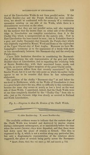 Keywords: The Quarterly journal of the Geological Society of London (14076394705).jpg BOULDEE-CLATS OF LINCOLNSHIRE 129 <br> east of the Lincolnshire Wolds do not form parallel series If the <br> Chalky Boulder-clay and the Purple Boulder- clay were correla- <br> tives we should be confronted with the anomaly of a continuous <br> succession existing on one side of the Wolds while there is a <br> discontinuous succession on the other <br> Assuming that they are not parallel series and also supposing <br> for the moment that the brown clays on either side of the dividing <br> ridge in Lincolnshire are complete correlatives then it is the <br> Chalky Clay which is unrepresented on the eastern side Now in <br> East Lincolnshire the base cannot be seen ; but in Yorkshire there is <br> a grey and chalky Basement-clay beneath the Purple-clay which <br> was originally regarded by Messrs Wood and Rome as the equivalent <br> of the Upper Glacial-clay of East Anglia Moreover we have Mr <br> Lamplugh's testimony as to the appearance of a break with more <br> or less unconformity between this Basement-clay and the overlying <br> Purple-clay <br> I have little hesitation therefore in considering the Basement- <br> clay of Holderness the sole representative of the grey and white <br> Boulder-clays of Lincolnshire and in regarding the overlying beds <br> of Brown Boulder-clay with their associated loams sands and <br> gravels as newer and higher members of the great Glacial series <br> This conclusion differs from that recently enunciated by Mr <br> Searles Wood but it is not the only point on which his earlier views <br> appear to me to be sounder that those he has subsequently <br> elaborated <br> The position of the chalky Basement-clay at and below the <br> sea-level in Holderness while on the Wolds of Lincolnshire it rises <br> to a great height above the sea offers no difficulty to this correlation ; <br> because the same clay occurs at nearly as low a level on the west <br> side of those Wolds I apprehend indeed that the Chalk Wolds were <br> at one time completely mantled by the Chalky Clay from side to <br> side ; just as the Jurassic ridge was clearly so covered in Rutland <br> and South Lincolnshire <br> Fig 4 ” Diagram to shoiu the Erosion of the Chalk Wolds <br> o <br> O older Boulder-clay N newer Boulder-clay <br> The available evidence seems to indicate that the eastern slope of <br> the Chalk W olds was invaded and destroyed by marine erosion <br> during a subsequent submergence at or immediately before the time <br> when the newer brown clays were deposited and that these were <br> laid down upon the plane of erosion so formed This idea is <br> expressed in fig 4 which is not a section along any particular line <br> but only a diagrammatic representation of the relations above <br> suggested the plane of erosion being partly across the Basemen t- <br> Quart Journ Geol Soc vol xxxvi p 527 and xxxviii p 712 37046971 114009 51125 Page 129 Text 41 http //www biodiversitylibrary org/page/37046971 1885 Geological Society of London Biodiversity Heritage Library The Quarterly journal of the Geological Society of London v 41 1885 Geology Periodicals Smithsonian Libraries bhl page 37046971 dc identifier http //biodiversitylibrary org/page/37046971 smithsonian libraries Information field Flickr posted date ISOdate 2014-04-30 Check categories 2015 August 26 CC-BY-2 0 BioDivLibrary https //flickr com/photos/61021753 N02/14076394705 2015-08-26 04 59 38 cc-by-2 0 PD-old-70-1923 The Quarterly journal of the Geological Society of London 1885 Photos uploaded from Flickr by Fæ using a script |