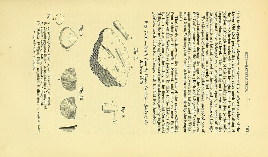| Keywords: The Quarterly journal of the Geological Society of London (12471532674).jpg HOLL MAI VEEN HILLS <br> 101- <br> it is to this epoch of elevatory movement i e after the close of the <br> Lower Old Red period that we must refer much of that tilting of <br> the Upper Silurian rocks which has brought them into their present <br> position although something of this is probably also due to the sub- <br> sequent changes of level The faulting on the western side of the <br> range must have belonged to a subsequent epoch as some of the <br> displacements are lateral caused by the unequal pressure of the up- <br> heaved metamorphic rocks on already tUted beds <br> To this epoch of elevation and denudation there succeeded one of <br> gradual subsidence during the age of the Coal-measures Between <br> the Coal-measures and the Permian Roth-todt-liegende there is <br> again unconformability; and again between the latter and the Trias <br> as at Great Whitney the Permian breccia is succeeded by the Keuper <br> marls <br> That the downthrow on the eastern side of the range extending <br> from Abberly on the north to Newent and thence to near Purton <br> Passage on the Severn was posterior in date to the Lias is shown <br> by the relative position of the latter in the Borrow and Corse Wood <br> Hills to the underlying Keuper marls and sandstones and by its juxta- <br> position north of Pui'ton Passage with the Old Red Sandstone <br> Figs 7-10 ” Fossils from tlie Upper Cambrian Rocks of the <br> Malvern Hills <br> Fig 7 <br> Fiff 8 <br> 7 Serpulites fistula Holl a natural size ; b enlarged <br> 8 Lmgula pygmcea Salter a natural size ; b magnified <br> 9 Oholella Scdteri Holl a natural size ; b magnified <br> 10 Obolella PhiUipsi Holl ; magnified 8 diameters a <br> b dorsal valve ; c profile <br> ventral valve; 34891771 108495 51125 Page 101 Text v 21 http //www biodiversitylibrary org/page/34891771 1865 Geological Society of London NameFound Lmgula pygmcea NameFound Obolella NameConfirmed Obolella NameBankID 4262282 NameFound Serpulites fistula Biodiversity Heritage Library The Quarterly journal of the Geological Society of London v 21 1865 Geology Periodicals Smithsonian Libraries bhl page 34891771 dc identifier http //biodiversitylibrary org/page/34891771 smithsonian libraries Information field Flickr posted date ISOdate 2014-02-12 Check categories 2015 August 26 CC-BY-2 0 BioDivLibrary https //flickr com/photos/61021753 N02/12471532674 2015-08-27 09 57 02 cc-by-2 0 PD-old-70-1923 The Quarterly journal of the Geological Society of London 1865 Photos uploaded from Flickr by Fæ using a script |