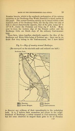 Keywords: The Quarterly journal of the Geological Society of London (13960021713).jpg ROCKS OF THE LEICESTEKSHIRE COAL-FIELD 21 <br> in contact with the Main Coal whilst at Boothorpe we know they <br> overlie strata belonging to a very much higher horizon in the Coal- <br> measures <br> 2 LlTHOLOGICAL CHARACTERS OF THE BEDS <br> Throughout the whole of the district we are describing the Per- <br> mian beds maintain certain well-marked lithological characters <br> which apart from any consideration as to the stratigraphical position <br> of the series are sufficient to differentiate them with certainty from <br> both the Trias and the Carboniferous At their outcrop they gener- <br> ally yield a subsoil of deep red or purple clay sometimes sandy and <br> containing more or less of brecciated fragments When observed <br> in freshly cut sections such as those described above pp 6 8 as <br> occurring at Swadlincote and the Boothorpe Clay Works it is seen <br> that the red and purple clays which are associated as a rule with <br> thin white sandy bands and several beds of breccia occur at the base <br> of the series The red clays are much more purple in colour and more <br> homogeneous in character than the marls of the Lower Keuper and <br> are of a decidedly different shade of colour from the marls of the <br> Upper Keuper The Permian marls with their breccias are at <br> Swadlincote followed upwards by a few feet of evenly bedded fine- <br> grained sandstones which are fissile and often beautifully ripple- <br> marked These sandstones are of a light buff colour as a rule very <br> soft and contain numerous specks of a blackish mineral They are <br> very unlike the saudstones found on any other geological horizon in <br> the district <br> The principal interest however centres in the brecciated bands <br> which it will be seen have yielded a large amount of information <br> throwing light upon the physical changes attending the deposition <br> of the whole series <br> The brecciated bands are rarely more than 3 feet in thickness and <br> contain fragments of a great variety of rock all comparatively little <br> water-worn and varying in size from that of a pea to 5 or 6 inches <br> across Occasionally still larger fragments occur; bat as a rule <br> they do not measure more than 1 to 2 inches along their greatest <br> dimensions <br> These angular pieces of rock are imbedded in a bluish-grey matrix <br> of calcareous sand which varies very much in hardness Sometimes <br> as at Measham and Oakthorpe it forms with the enclosed fragments <br> a rock of a considerable degree of hardness whilst at other places <br> as jNewhall Park Colliery Swadlincote c it is only in part con- <br> solidated and readily breaks down under the action of the weather <br> The red marly soil at the outcrop of the Permians is of a very rich and <br> fertile character and affords in this respect a great contrast to the very light <br> sandy and pebbly soil of the Bunter and to the cold heavy soil of the under- <br> lying Coal-measure clays The Permian marls are in some localities used <br> for dressing the sandy soils of the Bunter which are so light as occasionally <br> to be completely denuded by the action of the wind 36939760 113696 51125 Page 19 Text 45 http //www biodiversitylibrary org/page/36939760 1889 Geological Society of London Biodiversity Heritage Library The Quarterly journal of the Geological Society of London v 45 1889 Geology Periodicals Smithsonian Libraries bhl page 36939760 dc identifier http //biodiversitylibrary org/page/36939760 smithsonian libraries Information field Flickr posted date ISOdate 2014-04-21 Check categories 2015 August 26 CC-BY-2 0 BioDivLibrary https //flickr com/photos/61021753 N02/13960021713 2015-08-26 06 51 51 cc-by-2 0 PD-old-70-1923 The Quarterly journal of the Geological Society of London 1889 Photos uploaded from Flickr by Fæ using a script |