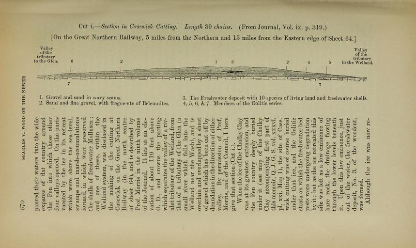 Keywords: The Quarterly journal of the Geological Society of London (13860133753).jpg 070 <br> SEAELES V WOOD ON THE NEWER <br> poured their waters into the wide <br> expanse of flat country aronnd <br> the Fen into which these other <br> four valleys opened On the parts <br> vacated by the ice in its retreat <br> which were above the sea-level <br> swamps and marsh-accumulations <br> formed in which were preserved <br> the shells of freshwater Mollusca ; <br> and one of these within the <br> Well and system was disclosed in <br> the making of the cutting at <br> Casewick on the Great Northern <br> Railway in the north centre <br> of sheet 64 and is described by <br> Prof Morris in the ninth volume <br> of the Journal It lies at an ele- <br> vation of about 110 feet above <br> 0 D and crowns the parting <br> which separates the vallej' of a riv- <br> ulet tributary of the Welland from <br> that of a tributary of the Glen a <br> small river which falls into the <br> Welland near the AVash and is <br> overlain and overlapped by a sheet <br> of gravel which has been cut off by <br> denudation in the direction of either <br> valley By permission of Prof <br> Morris and of the Council I here <br> give that section Cut i <br> When the ice of the Chalky Clay <br> was at its greatest extension and <br> the Pen country deeply buried <br> under it see map of the Chalky <br> Clay accompanying first part of <br> this memoir Q J G S vol xxxvi <br> pi xxi Map 1 the site of Case- <br> wick cutting was of course buried <br> under that ice and the Oolitic <br> strata on which the fresh water bed <br> rests were undergoing degradation <br> by it ; but as the ice retreated this <br> site was left as a low eminence of <br> bare rock the drainage flowing <br> through the lower levels beneath <br> it Upon this low eminence just <br> out of the water the freshwater <br> deposit No 3 of the woodcut <br> was formed <br> Although the ice was now re- <br> 020 <br> 3 p <br> °2 Pj <br> bd <br> P CD <br> c EL <br> CD <br> oB <br> o ~ <br> I <br> o <br> Oi <br> c <br> CD <br> Q <br> g <br> r - <br> Q <br> cT <br> cc <br> Ha <br> M <br> <br> C <br> «Q <br> B <br> r-t- <br> H <br> CD <br> f\ <br> c <br> CD <br> CO <br> CO <br> B I <br> cd a 36936507 113692 51125 Page 670 Text 38 http //www biodiversitylibrary org/page/36936507 1882 Geological Society of London NameFound Mollusca NameConfirmed Mollusca EOLID 2195 NameBankID 230454 Biodiversity Heritage Library The Quarterly journal of the Geological Society of London v 38 1882 Geology Periodicals Smithsonian Libraries bhl page 36936507 dc identifier http //biodiversitylibrary org/page/36936507 smithsonian libraries Information field Flickr posted date ISOdate 2014-04-15 Check categories 2015 August 26 CC-BY-2 0 BioDivLibrary https //flickr com/photos/61021753 N02/13860133753 2015-08-26 07 53 30 cc-by-2 0 PD-old-70-1923 The Quarterly journal of the Geological Society of London 1882 Photos uploaded from Flickr by Fæ using a script |