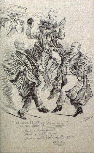 | Keywords: The red spectre of revolution.jpg en Cartoon showing robed Supreme Court justices John Marshall Harlan and Edward Douglass White lifting up armed man anarchy By George Yosts Coffin 1895-05-24 http //www loc gov/pictures/resource/acd 2a07278/ Coffin George Yost 1850-1896 acd 2a07278 other versions PD-old-100-1923 George Yost Coffin Anarchism in the United States Edward Douglass White John Marshall Harlan | ||||