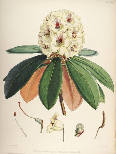 | Keywords: The rhododendrons of Sikkim-Himalaya (Tab. XXVII) (8221592278).jpg Tat <br> J-D H ael TLtch- lith <br> Rfte fl fc ITicnxolSj itn-p <br> mini <br> 3 <br> IE®Er WK MirilE <br> TO <br> m <br> a - 11630735 42878 11178 Tab XXVII Text http //www biodiversitylibrary org/page/11630735 1851 10 5962/bhl title 11178 Fitch W H ; Hooker Joseph Dalton; Hooker William Jackson; Reeve Benham and Reeve Biodiversity Heritage Library The rhododendrons of Sikkim-Himalaya Encyclopedia of Life Images 1849 England Ericaceae Graphic media Hand colored Himalaya Mountains Lithograph Plants Rhododendron Missouri Botanical Garden Peter H Raven Library bhl page 11630735 dc identifier http //biodiversitylibrary org/page/11630735 taxonomy binomial Rhododendron wightii himalaya mountains missouri botanical garden peter h raven library taxonomy binomial rhododendron wightii Information field Flickr posted date ISOdate 2012-11-26 CC-BY-2 0 BioDivLibrary https //flickr com/photos/61021753 N02/8221592278 2015-09-01 06 23 43 cc-by-2 0 PD-old-70-1923 Rhododendron wightii The rhododendrons of Sikkim-Himalaya Photos uploaded from Flickr by Fæ using a script |