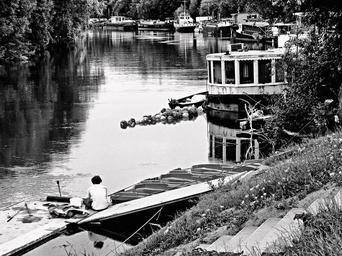 Keywords: the river seine seine the barge wharton william house on the seine the silhouette boat house on the water