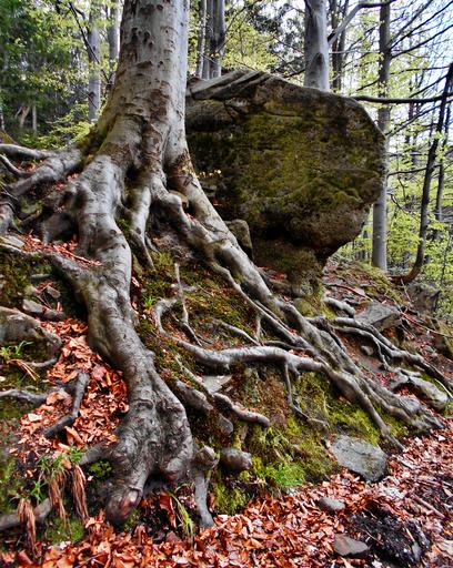 Keywords: the roots of the mountains stone tree survival beech beeches beskids nature old hooked being
