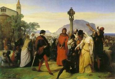 Keywords: The Sicilian Vespers by Francesco Hayez.jpg Artwork de Gemäldeserie »Sizilianische Vesper« Szene 3 it Francesco Hayez Dalla serie I vespri siciliani scena 3 oil canvas cm 225 300 de Rom Galleria Nazionale d'Arte Moderna The Yorck Project 10 000 Meisterwerke der Malerei DVD-ROM 2002 ISBN 3936122202 Distributed by DIRECTMEDIA Publishing GmbH 1846 Creator Francesco Hayez http //mail wikipedia org/pipermail/wikide-l/2005-April/012195 html Other versions PD-old-100 PD-Art-YorckProject Romantic history paintings 1846 paintings 1282 Civil wars Sicilian Vespers Paintings in Rome Paintings in the Galleria nazionale d'arte moderna Rome Francesco Hayez Palermo in art Francesco Hayez |