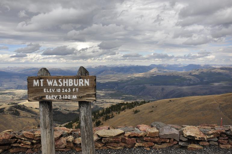 Keywords: adventure altitude blue clouds elevation green high highest hiking landscape mount mountain mt national nature park sign sky summit top usa vacation view vista washburn white wyoming yellowstone