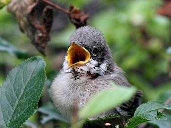 Keywords: the sparrow wróbelek bird chick animal branches the bushes bush socket spout open young small nature