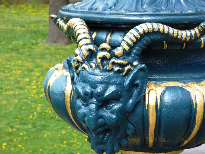 Keywords: the statue sculpture statuette ornament pszczyna poland park green horns gilding decorating buck kozieł devil nature