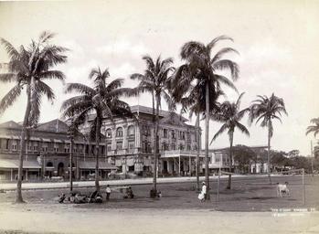 Keywords: The Strand Hotel, Rangoon.jpg en Photograph of the Strand Hotel in Rangoon Yangon Burma taken by Philip Adolphe Klier in the 1890s The hotel was built in 1896 for the Sarkies Brothers founders of two other famous colonial hotels Raffles Hotel in Singapore and the Bangkok Oriental The Strand was advertised in Murray ™s Handbook of 1911 as the Leading Hotel in the East and was patronised by many distinguished guests It is a white stucco building on Strand Road facing the Rangoon River This is a general view from the street of the main façade of the hotel with palm trees in the foreground Klier of German origin began as a professional photographer in Moulmein in Lower Burma in 1871 In a few years he had built up a considerable reputation and based himself in Rangoon He took hundreds of photographs mostly for Europeans both as a memoir of their stay in Burma and to feed the great interest in pictures of the country in Europe He was known as a specialist in art photography and his work was published in art books He was interested in portraying images of mosaics woodcarving and other crafts of Burma In fact he later became a dealer in arts and crafts such as silverware and furniture http //www bl uk/onlinegallery/onlineex/apac/photocoll/t/019pho0000088s1u00001000 html Klier Philip Adolphe c 1845-1911 1895 PD-Myanmar PD-1923 The Strand Historical images of Rangoon Photographs by Philip Adolphe Klier Rangoon in the 19th century |