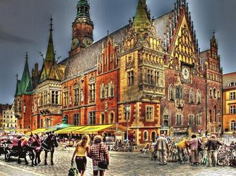 Keywords: the town hall wrocław town hall architecture people old town the market monument the city centre towers soaring style figure historic building pediment of the town hall
