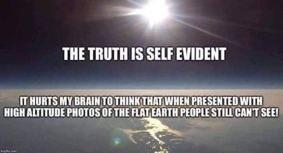 Keywords: truth altitude balloon nasa news flatearth flat earth space hoax sun moon yin yang yinyang god reality plane universe curve curvature nocurve bible dome The truth is self evident. It hurts my brain to think that when presented with high altitude photos of the flat earth people still can't see! FlatEarth meme collected by A.J. Wilson of iPressThis at FlatEarth.Online, made by others. The truth is self evident. It hurts my brain to think that when presented with high altitude photos of the flat earth people still can't see! FlatEarth meme collected by A.J. Wilson of iPressThis at FlatEarth.Online, made by others. |