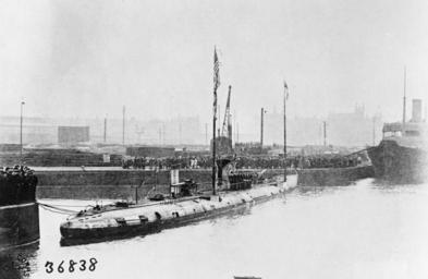 Keywords: The US Navy in the First World War Q58567.jpg The US Navy in the First World War<br/> Captured German submarine flying US flag Manchester Canal American official photographer 1917-12-30 First World War http //media iwm org uk/iwm/mediaLib//325/media-325254/large jpg Q 58567 205307754 This image was created and released by the Imperial War Museum on the http //www iwm org uk/corporate/privacy-copyright/licence IWM Non Commercial Licence Photographs taken or artworks created by a member of the forces during their active service duties are covered by Crown Copyright provisions Faithful reproductions may be reused under that licence which is considered expired 50 years after their creation American First World War Official Exchange Collection Associated people and organisations US Navy German Navy Associated places Manchester Lancashire England UK Associated themes US Navy 1917-1918 German Navy 1914-1918 Associated keywords Submarine Warfare Prisoners Naval Warfare photographs PD-USGov American First World War Official Exchange collection Images uploaded by Fæ |