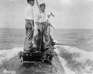 Keywords: The US Navy in the First World War Q103675.jpg The US Navy in the First World War<br/> American sailors signalling from deck of a submarine American official photographer First World War http //media iwm org uk/iwm/mediaLib//349/media-349376/large jpg Q 103675 205139238 This image was created and released by the Imperial War Museum on the http //www iwm org uk/corporate/privacy-copyright/licence IWM Non Commercial Licence This photograph was taken by American military personnel in their official duties and is public domain under US law consequently the following licence applies in addition to any other claim PD-USGov-Mil American First World War Official Exchange Collection Associated people and organisations US Navy Associated themes US Navy 1917-1918 Associated keywords Submarine Warfare Naval Warfare photographs PD-USGov American First World War Official Exchange collection Images uploaded by Fæ |