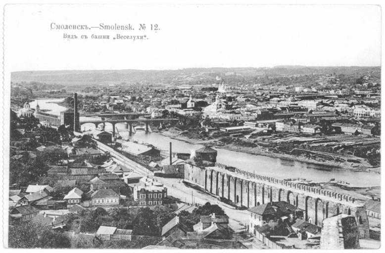 | Keywords: The view from the tower Veseluha 4.jpg en The view from the tower area to Veseluha current street Sobolev fortification in the Dnieper River in present-day Zadneprovsky district of Smolensk ru Вид с башни Веселуха на айон нынешней улицы Соболева к епостной стены у Днеп а те ито ии сов еменного Заднеп овского айона Смоленска О игинальная отк ытка е установлены До 1917 года PD-RusEmpire 20th-century postcards Postcards of Smolensk | ||||