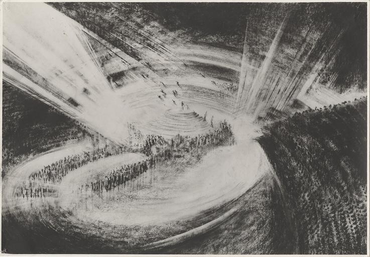 | Keywords: blackandwhite monochrome photo border black and white H. Th. Wijdeveld. Impression of the interior of the Great People’s Theatre, Amsterdam, 1919-1920. Collection Het Nieuwe Instituut. 'Nightbirds' descends into the night-time world of bohemians and night owls. How did architects over the past century manage to capture in their drawings the bustle as the audience gradually files into a theatre? What mood do their sketches conjure up of a café or club? And does any drawing depict the loneliness of the city, the emptiness after the party? See www.hetnieuweinstituut.nl/en/nightbirds H. Th. Wijdeveld. Impression of the interior of the Great People’s Theatre, Amsterdam, 1919-1920. Collection Het Nieuwe Instituut. 'Nightbirds' descends into the night-time world of bohemians and night owls. How did architects over the past century manage to capture in their drawings the bustle as the audience gradually files into a theatre? What mood do their sketches conjure up of a café or club? And does any drawing depict the loneliness of the city, the emptiness after the party? See www.hetnieuweinstituut.nl/en/nightbirds |