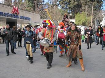 Keywords: Theatre of Motion in the streets of Tbilisi.jpg en The Theatre of Motion troupe in the streets of Tbilisi in front of the Tavisuplebis Moedani Metro station own Kober 2011-02-13 Source own Cc-zero Tavisuplebis Moedani Tbilisi Actors from Georgia Mkhedruli signs on buildings |