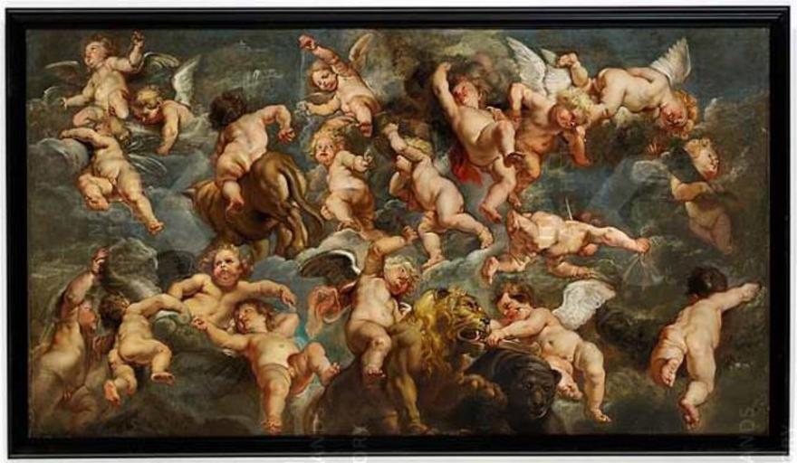 | Keywords: Theodor Boeyermans - Playing putti with wild animals.jpg Artwork Creator Theodoor Boeyermans 1635-1678 Oil on canvas cm 115 210 Sold at Bruun Rasmussen Copenhagen 2008-11-19 - 2008-11-20 accession number object history credit line https //rkd nl/explore/images/119131 PD-old-100 Theodoor Boeyermans 17th-century paintings of putti |